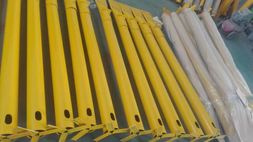 施工前檢查測試樁外觀尺寸及內(nèi)部結(jié)構(gòu)是否完好,接線是否牢固。若產(chǎn)品本身帶引線,檢查其引線長度、絕緣層是否符合圖紙要求。測試樁應符合如下技術(shù)要求:1、測試樁由測試樁(含底部固定架)、測試接線板和銘牌幾部分組成。2、測試樁樁體應采用規(guī)格為Φ108 的鋼管,長度為3m,測試樁與底部固定座采用焊接連接,底座在現(xiàn)場與水泥基墩連接。3、測試樁外壁(包括底板)應涂敷防腐涂料,通過涂塑工藝處理,面漆為黃色。4、測試樁上應有一個可以上鎖的門,并配有特殊的全線通用的專用鑰匙;測試門內(nèi)部轉(zhuǎn)軸及鎖扣檔片制造中應有足夠的強度,以防人為破壞,測試樁門鎖采用在大氣環(huán)境下不生銹的材料制作。5、樁體內(nèi)對應測試門處,應裝有便于測試電纜連接的接線板,接線板應與樁體絕緣,樁體底部應有能使其穩(wěn)固的結(jié)構(gòu),樁體頂部應留有安裝銘牌的空間和預留孔,便于銘牌壓接或鉚接。6、接線板應符合下列要求:a.接線板上的接線端子(又稱接線柱)為 6柱型,接線板用絕緣板板制作。b. 接線端子適于連接截面為2.5-10mm2的電纜。7、測試樁銘牌:銘牌為白底黑字不銹鋼銘牌其尺寸大小 140mm×200mm 銘牌上標注管道名稱、里程數(shù)、管理單位名稱、聯(lián)系電話、編號及測試樁類型等信息,文字采用電解刻字加工。測試樁固定采用集中預制水泥固定墩,再在現(xiàn)場安裝時用水泥溝縫,測試樁與水泥墩縫隙下部采用棉麻封堵。